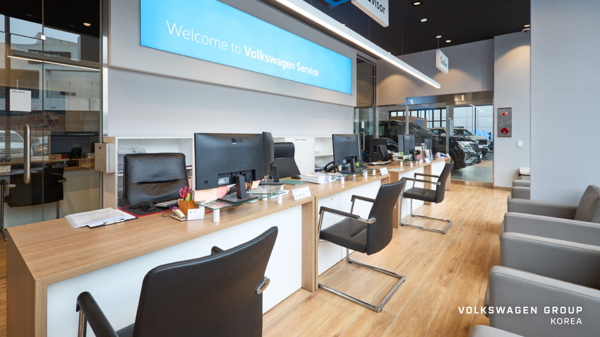 서비스센터에는 동시에 5대의 차량을 정비할 수 있는 최신 워크베이와 폭스바겐 공식 교육을 이수한 전문 테크니션 인력을 배치해 신속하고 믿을 수 있는 서비스를 제공한다.