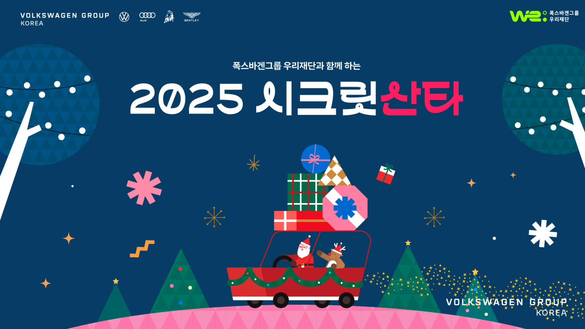‘시크릿 산타’는 2018년부터 폭스바겐그룹코리아가 진행해 온 대표적인 지역 사회공헌활동으로 미래를 이끌어갈 아이들의 꿈과 용기를 응원한다는 취지로 기획됐다. 지난해부터는 폭스바겐그룹 우리재단이 사업을 이어받아 소외계층 지원 및 건강한 사회를 만들기 위한 프로그램인 ‘위: 셰어(WE: Share)’의 일환으로 운영하고 있다.
