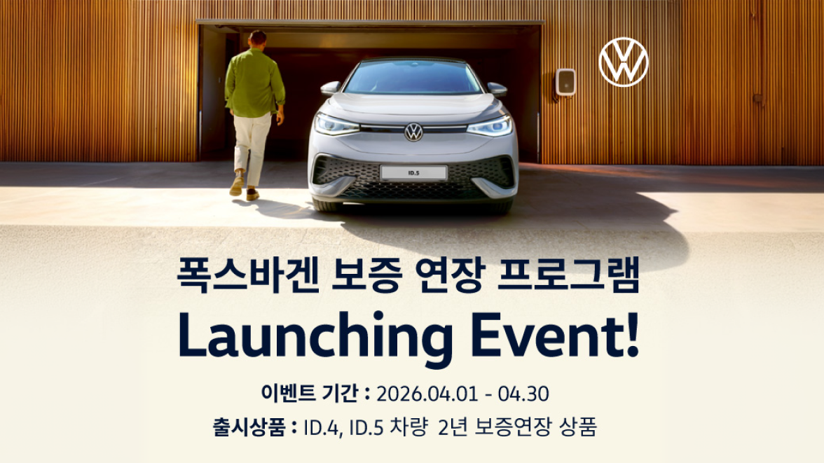 (2026년 4월 1일) 폭스바겐코리아가 순수 전기차 ID.4 및 ID.5 고객을 위한 ‘폭스바겐 보증 연장 프로그램’을 출시한다.