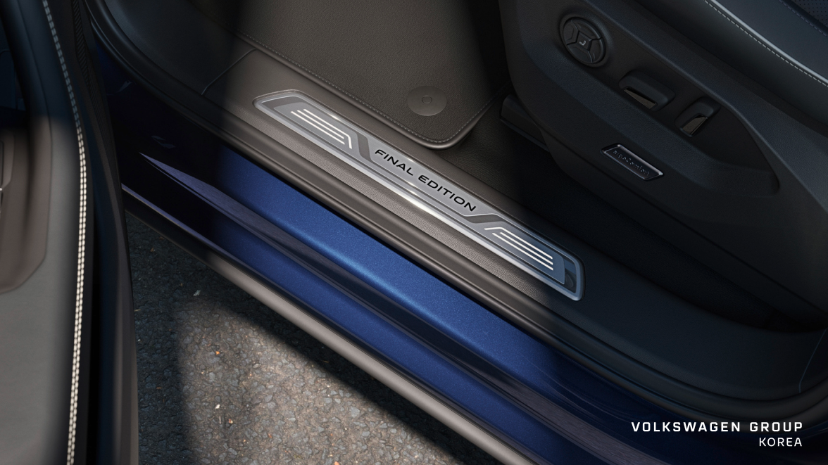 가장 먼저 차량의 외관 윈도우 프레임에서 레이저로 각인된 ‘FINAL EDITION’ 레터링을 볼 수 있다. 실내에는 동일한 레터링이 음각된 가죽 기어 레버를 비롯해 일루미네이티드 도어 스커프 및 일루미네이티드 인테리어 데코에도 동일한 레터링을 적용하여 파이널 에디션만의 특별함을 강조한다.