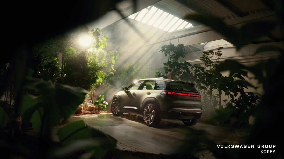 외모는 폭스바겐 디자인 언어의 정수를 명확하게 보여줍니다. 어반 정글 그린(Urban Jungle Green) 컬러와 '순수한 긍정의 미학(Pure Positive)'이라는 새로운 디자인 언어를 바탕으로 SUV 본연의 힘과 안정감에 개성을 더했습니다. 미래를 선도하는 트렌드 리더의 면모가 이런 느낌일까요?