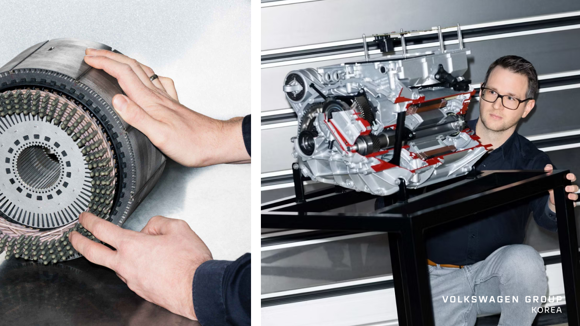 코비니안 베버 (Korbinian Weber)와 바스티안 하이들러 (Bastian Heidler)를 비롯한 전문가들은 콰트로 기술을 배터리 전기 구동 세계로 전환하는 작업을 담당하고 있습니다. "우리는 기존 내연 기관 구동 시스템과 동일한 인프라를 사용합니다. 완성된 전기 자동차에서 동일한 균형감, 정밀함, 조화로움- 즉, 콰트로 특유의 감각을 제공해야 하고, 제공할 수 있어야 하기 때문입니다." 하이들러는 여기에 덧붙이길, “비록 완전히 다른 기술적 솔루션을 사용하더라도 말이죠.”