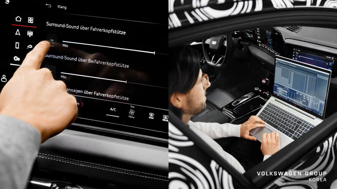 *요르크 코차크는 아우디 사운드 랩에서 4년간 근무해왔습니다. 아우디 A6 e-tron에서 그는 사운드 존 기능 개발을 담당했습니다. (좌)