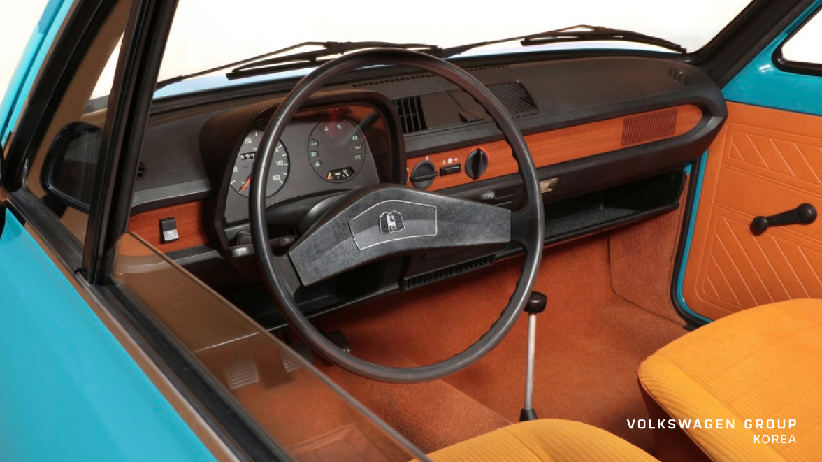 인테리어 역시 고급 차 못지않게 잘 꾸며져 있었습니다. 클래식한 2 스포크 스티어링 휠에 강렬한 오렌지색 대시보드는 지금 봐도 세련된 레트로 무드를 자아냅니다.