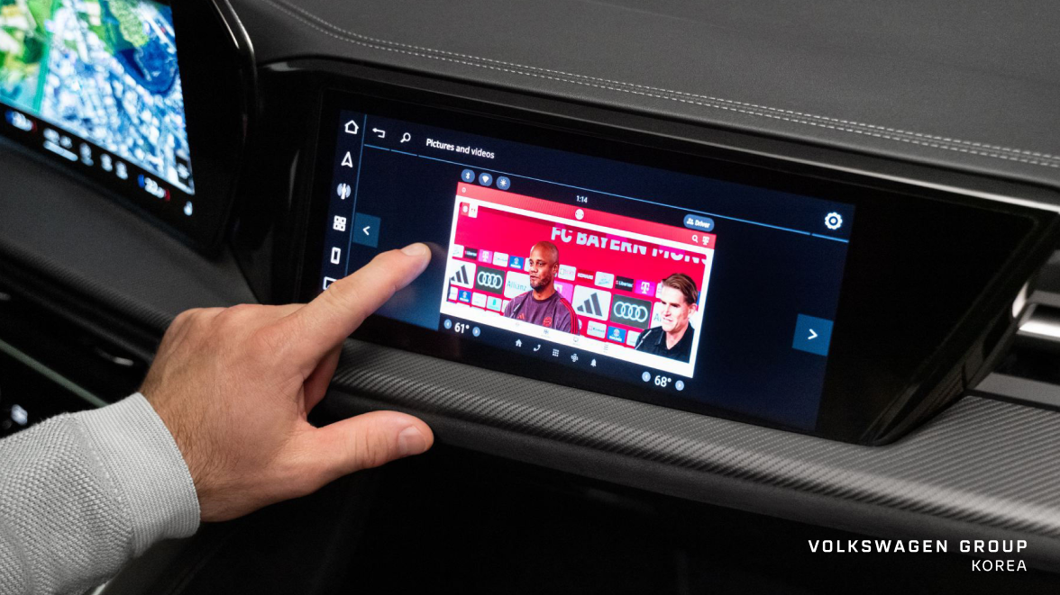 아우디 애플리케이션 스토어에서 아우디는 네이버 지도, 스포티파이, 유튜브, 왓챠 등의 어플과 같은 콘텐츠를 조수석 디스플레이에 제공합니다. 아우디는 스포츠 스트리밍 서비스 DAZN 차량용 앱을 제공하는 첫번째 자동차 브랜드입니다.