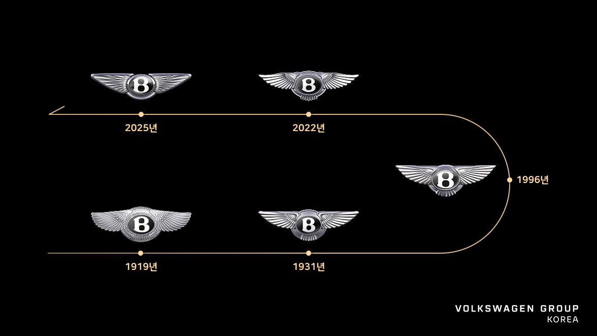 그리고 2025년, 벤틀리는 다섯 번째 윙드 B 엠블럼을 공개했습니다. 이번 변화의 핵심은 ‘정제된 간결함’입니다. 기존 엠블럼의 구조적 틀은 유지하면서, 시각적 복잡성은 최소화해 더 현대적이고 직관적인 형태로 재탄생했습니다. 디지털 환경에서도 명확히 인식될 수 있도록 수많은 요소를 다듬고 밀도 있게 완성한 결과물이라고 할 수 있습니다.