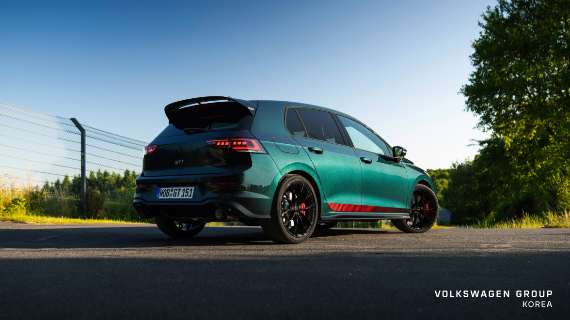 외장 컬러는 총 5가지 선택지가 제공되는데요. 퓨어 화이트와 문스톤 그레이, 그레나딜라 블랙 메탈릭 등 기존 폭스바겐에서 만나볼 수 있던 색상과 더불어 에디션 50 전용 컬러인 ‘토네이도 레드’와 ‘다크 모스 그린 메탈릭’이 눈길을 끕니다. GTI의 헤리티지와 현대적인 세련미를 동시에 보여주는 독특한 색상이죠.